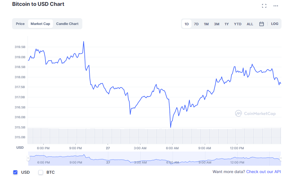 Vốn hóa Bitcoin giảm còn 317 tỷ USD