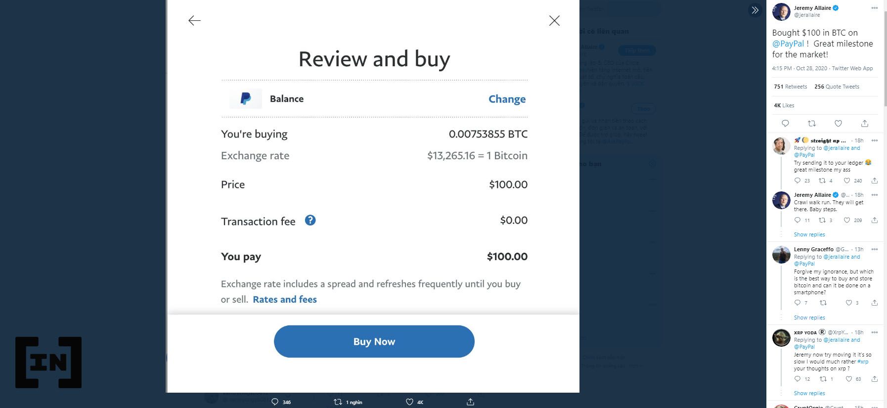 Hành động mua Bitcoin trên Paypal của Jememy hứa hẹn sẽ là nước cờ Domino đầu tiên để khởi đầu cho nhiều giao dịch mua bán Bitcoin và Altcoin trên Paypal. Nếu nếu chức năng này sớm vào hoạt động, công ty thanh toán này sẽ góp phần giúp Blockchain chạy đúng mục tiêu của mình về thế giới ai cũng sở hữu Crypto.