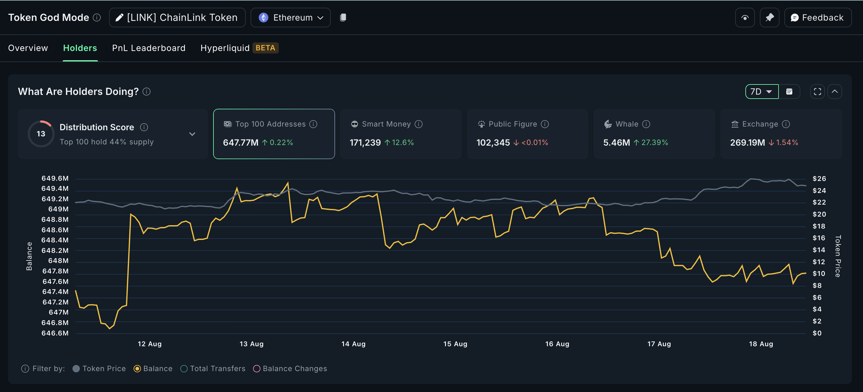 Vào ngày 16/08/2025, số dư LINK trên sàn giao dịch đã giảm xuống mức thấp hàng tháng là 162.59 triệu LINK, ngay khi đợt tăng giá bắt đầu. Đó là một dấu hiệu tốt. Nó có nghĩa là ít token LINK hơn đang nằm trên các sàn giao dịch, do đó áp lực bán có khả năng thấp.
