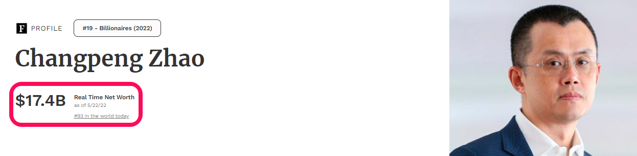 Đầu tháng 4 năm nay, tài sản của Changpeng Zhao được Forbes ước tính là 65 tỷ USD, thì chỉ chưa đầy hai tháng sau đó con số này chỉ còn lại khoảng 17.4 tỷ USD.