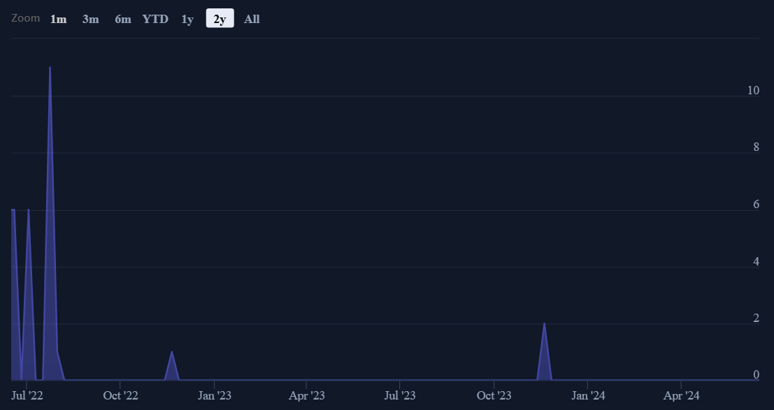 Nếu những dự án nào có tần suất cập nhật hoạt động phát triển kém, ví dụ cả năm gần đây không một commits, không có cập nhật mới, không theo đuổi xu hướng thị trường… thì khả năng cao dự án sẽ sớm bị quên lãng. Ví dụ, DOCK vừa bị Binance hủy niêm yết vào tháng trước chỉ có 4 contributors và chỉ có duy nhất 1 commit trong suốt cả năm qua.