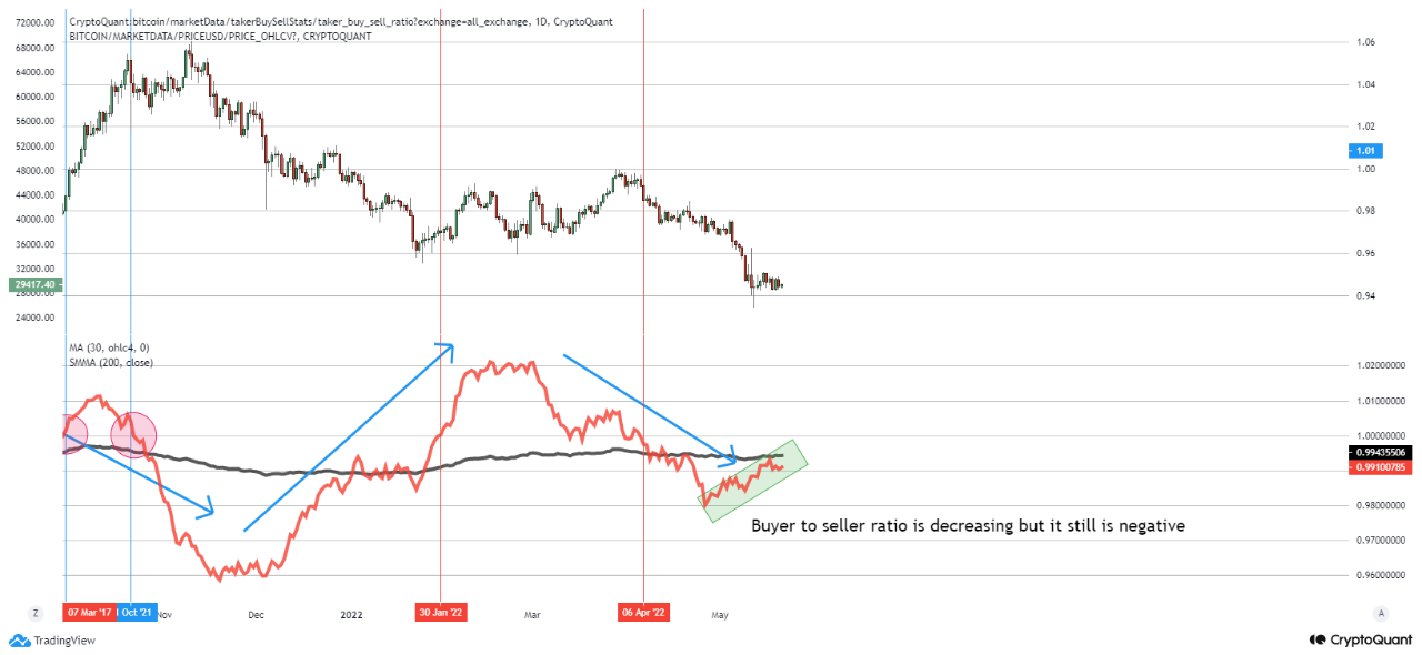 Taker là những người sẵn sàng khớp lệnh. Lượng khớp lệnh mua bắt đầu tăng nhanh hơn so với lượng khớp lệnh bán. Nhưng tỷ lệ mua/bán này vẫn nhỏ hơn 1 và nhỏ hơn mức trung bình trước đó.