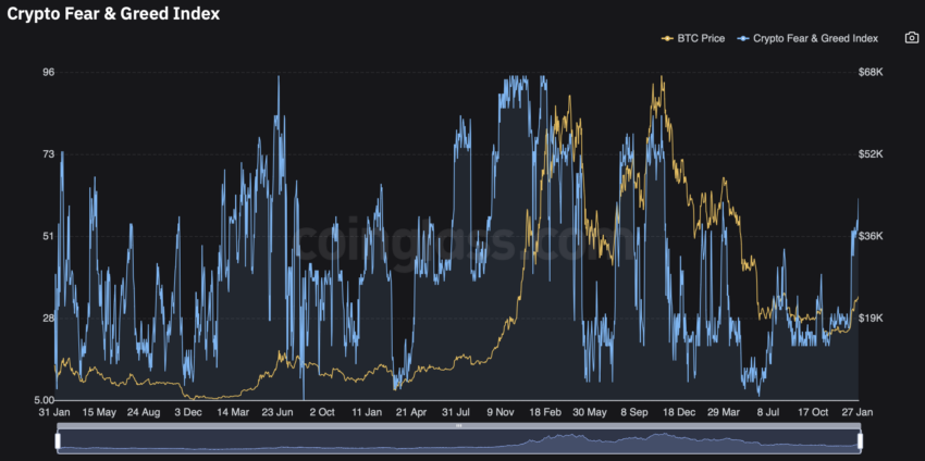 Vào ngày 30/1, chỉ số này đạt mức 61, được coi là nằm trong lãnh thổ “Tham lam” và gần với mức cao nhất trong một năm của nó. Điều này hoàn toàn trái ngược với tháng trước, khi chỉ số này đứng ở mức 25, báo hiệu “tâm lý sợ hãi tột độ” của các nhà đầu tư.
