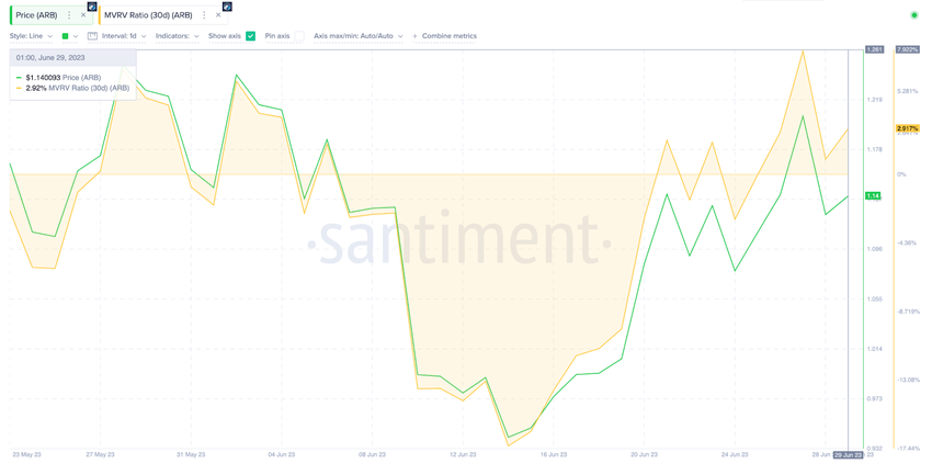 Xem xét các yếu tố trên, giá Arbitrum có thể sẽ hợp nhất trên phạm vi 1 USD trong những ngày tới. Tỷ lệ MVRV cho thấy rằng mặc dù giá giảm gần đây, hầu hết các nhà đầu tư đã mua ARB trong 30 ngày qua vẫn nắm giữ 3% lợi nhuận chưa thực hiện.