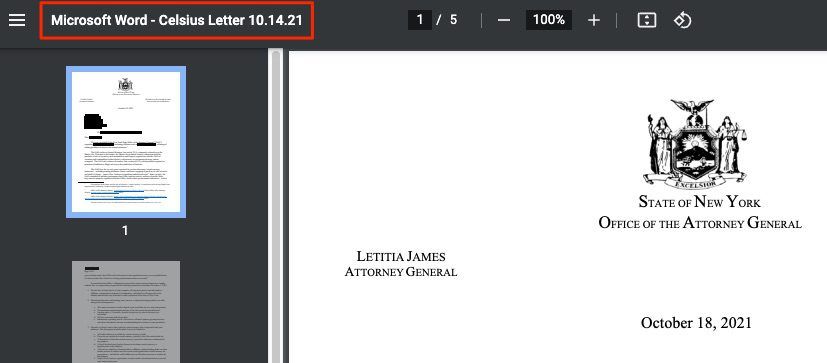 Theo tìm hiểu của chúng tôi, một trong những cái tên này chính là Celsius. Sỡ dĩ biết được điều này là vì trang web của Tổng chưởng lý đã vô tình tiết lộ qua tên file (nhưng hiện nay họ đã chỉnh sửa lại).