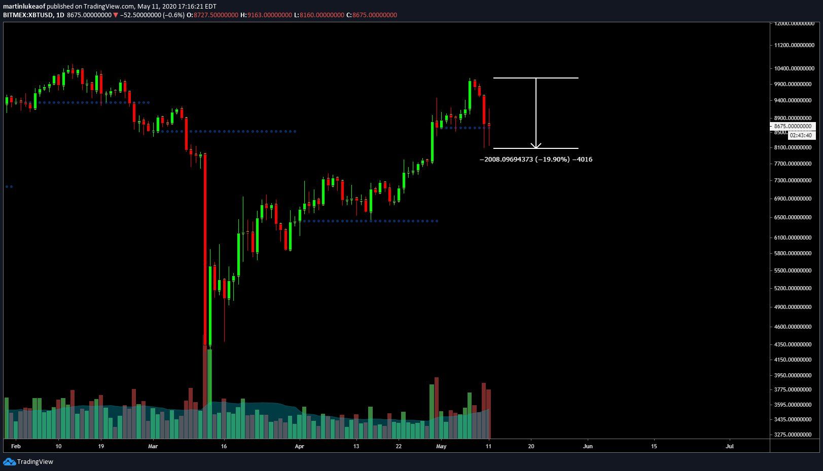 Bitcoin gần đây đã sụt giảm đáng kể từ 10.000 USD xuống đến 8.100 USD. Có thể là đồng tiền điện tử hàng đầu này đã chạm đáy của “bán sự thật”. Nhà phân tích tiền điện tử Luke Martin cho là đáy sau halving đã diễn ra.