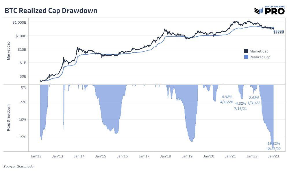 Dựa trên sự sụt giảm nghiêm trọng này, @DylanLeClair_ đã tweet một biểu đồ khác. Trên đó, chúng ta có thể thấy mức độ suy giảm của giá trị vốn hóa thị trường thực tế sâu đến mức nào. Vào ngày 27/12/2022, nó đạt mức giảm kỷ lục -18.32%. Đây là mức thấp nhất trong lịch sử.