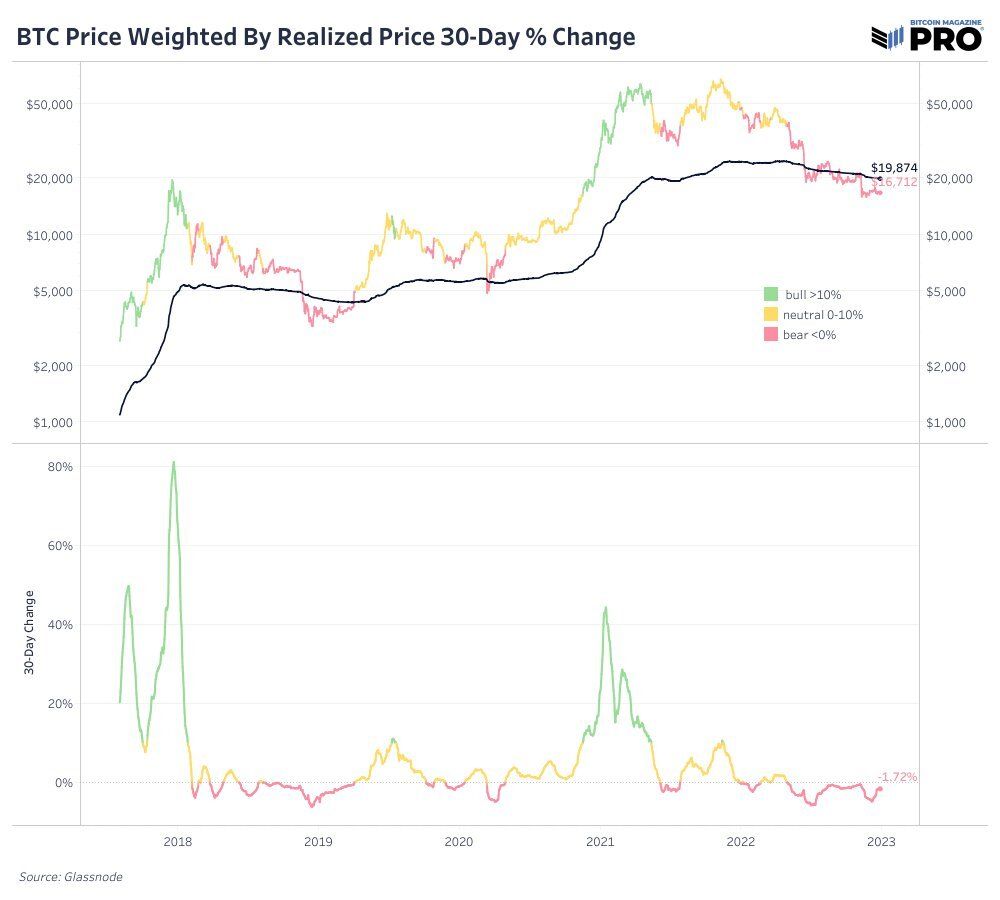 Một vài chỉ số on-chain cho chúng ta hy vọng rằng đã đạt đến đáy của thị trường giá xuống. Tuy nhiên, một số người lại cho rằng còn một giảm giá nữa ở phía trước và đáy vĩ mô sẽ xuất hiện trong năm 2023. Bài phân tích on-chain này nghiêng nhiều hơn về câu chuyện thứ hai, vì hai chỉ số quan trọng của thị trường Bitcoin vẫn chưa có dấu hiệu phục hồi. Mặc dù cơ sở chi phí on-chain Bitcoin và vốn hóa thị trường thực tế hiện nay rất thấp, nhưng vẫn chưa có dấu hiệu đảo chiều tăng giá của chúng.