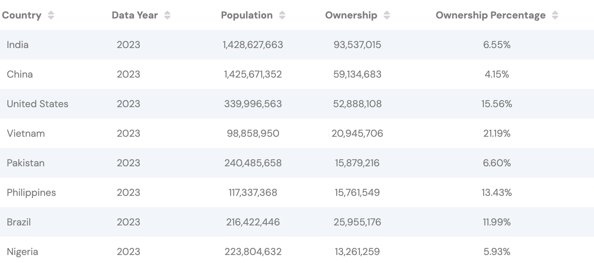 Coinbase với vai trò là người mua tiềm năng cho thấy sự quan tâm mạnh mẽ của họ đối với thị trường Ấn Độ – một trong những khu vực phát triển nhanh nhất toàn cầu về việc chấp nhận tiền điện tử. Theo dữ liệu từ Triple-A, Ấn Độ nằm trong số các quốc gia hàng đầu thế giới với hơn 93 triệu người sở hữu tiền điện tử.