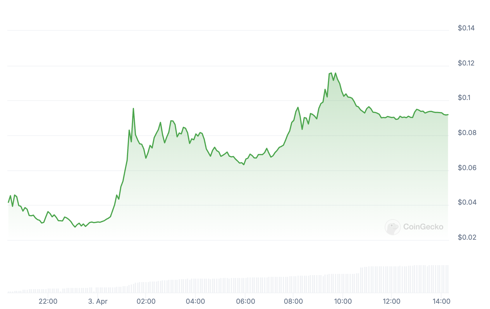 Sau đó, EDGE đã chứng kiến giá của nó tăng vọt 120.6% lên 0.091 USD. Trước đó, một phản ứng tương tự đã được quan sát thấy ở Doginme (DOGINME) và Keyboard Cat (KEYCAT) sau khi chúng được niêm yết trên sàn giao dịch.