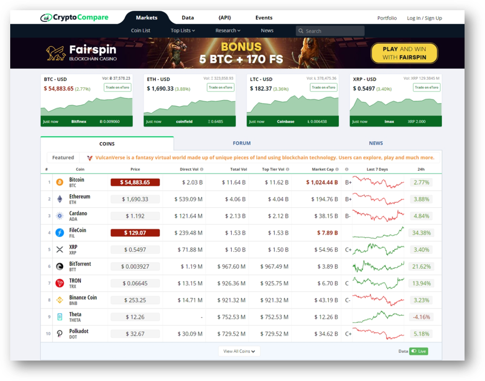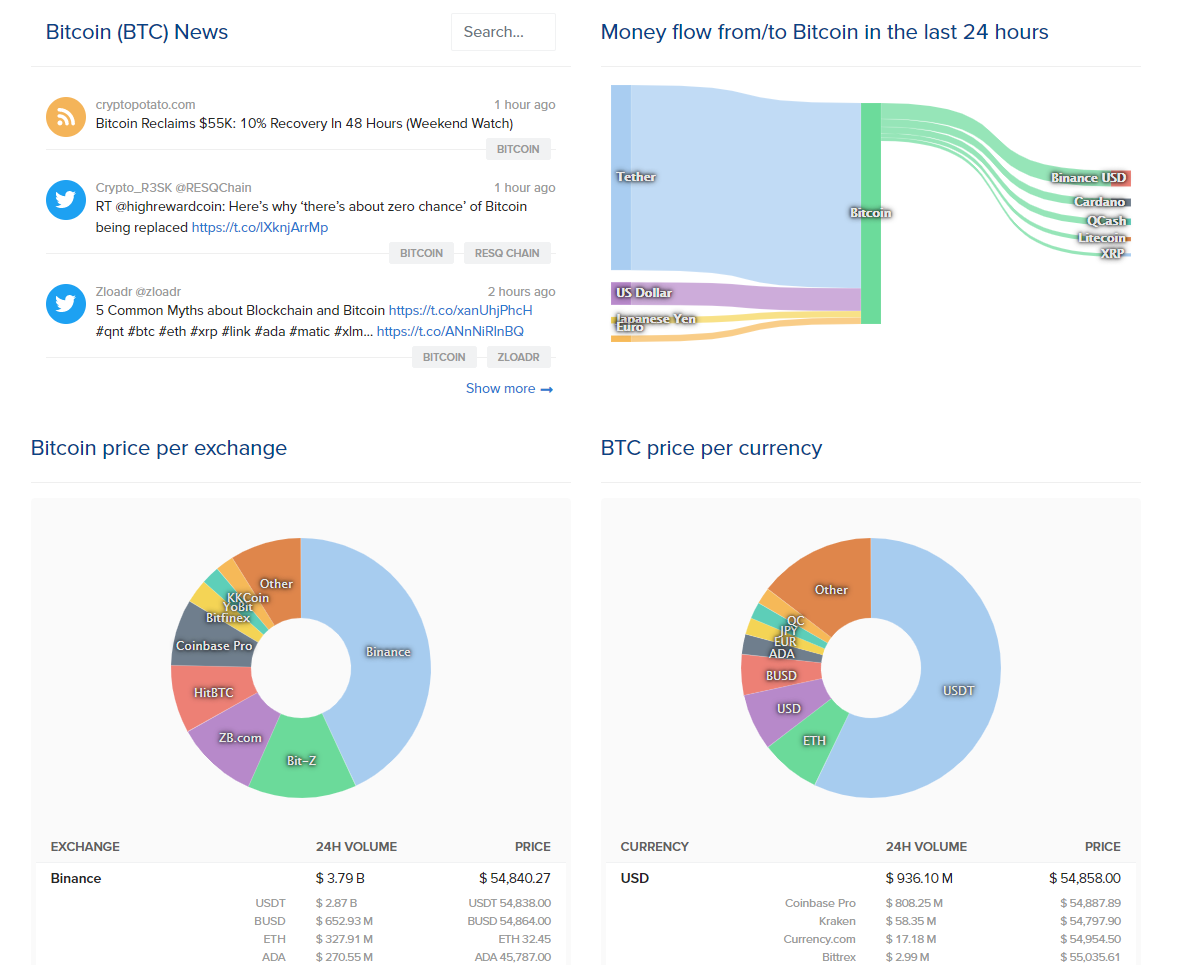 Có một vài chức năng mà Cryptocompare nổi trội hơn những trang khác, như là: