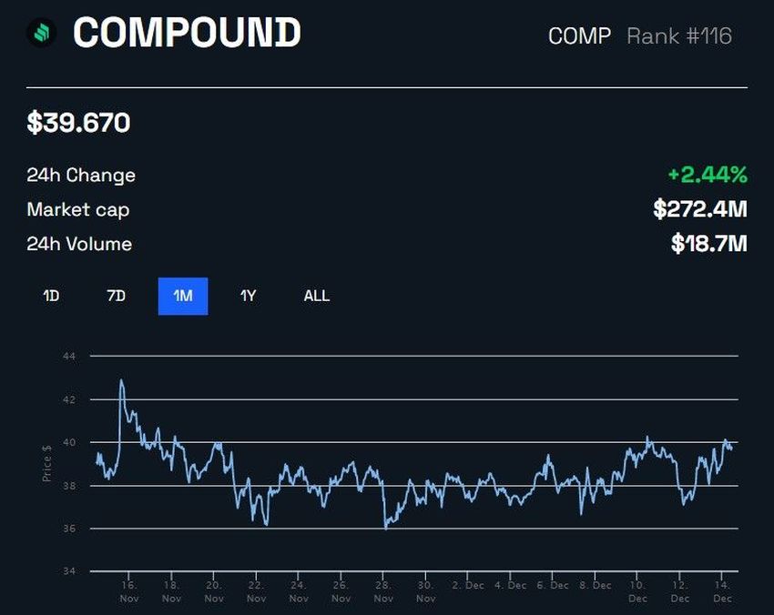 “Người mua COMP nhỏ lẻ nhìn chung có khoản đầu tư không được tốt. Giá trị của COMP đạt đỉnh vào tháng 5/2021 ở mức gần 500 USD, tương đương với tổng vốn hóa thị trường khoảng 4 tỷ USD. Giá trị của nó nhanh chóng giảm một nửa và vào mùa thu năm 2021, vốn hóa thị trường của COMP chỉ còn hơn 2 tỷ USD một chút.” Tại thời điểm BeInCrypto viết bài này, giá COMP đang giao dịch trong phạm vi giá 38 USD – 40 USD. So với mức ATH là 910 USD đạt được vào tháng 5 năm ngoái, giá đã giảm khoảng 95%.