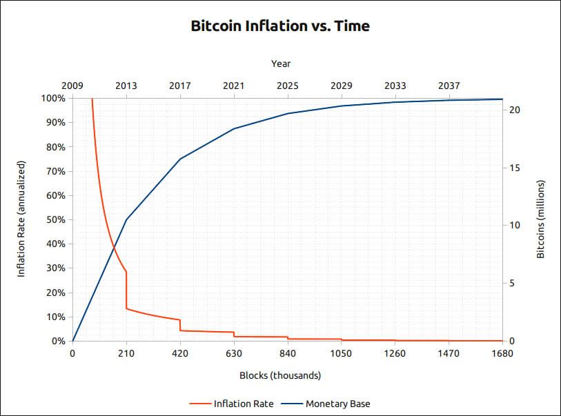 Theo Biểu đồ dưới đây đơn giản hóa việc phát hành và cung cấp tiền tệ. Qua đó, chúng ta dự đoán được số Bitcoin còn lại: