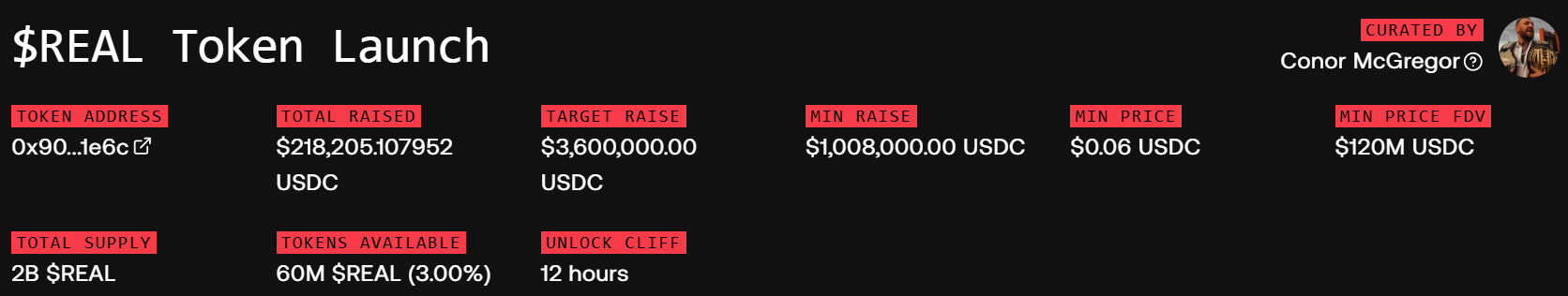 Token REAL của Conor McGregor chỉ huy động được 218,000 USD