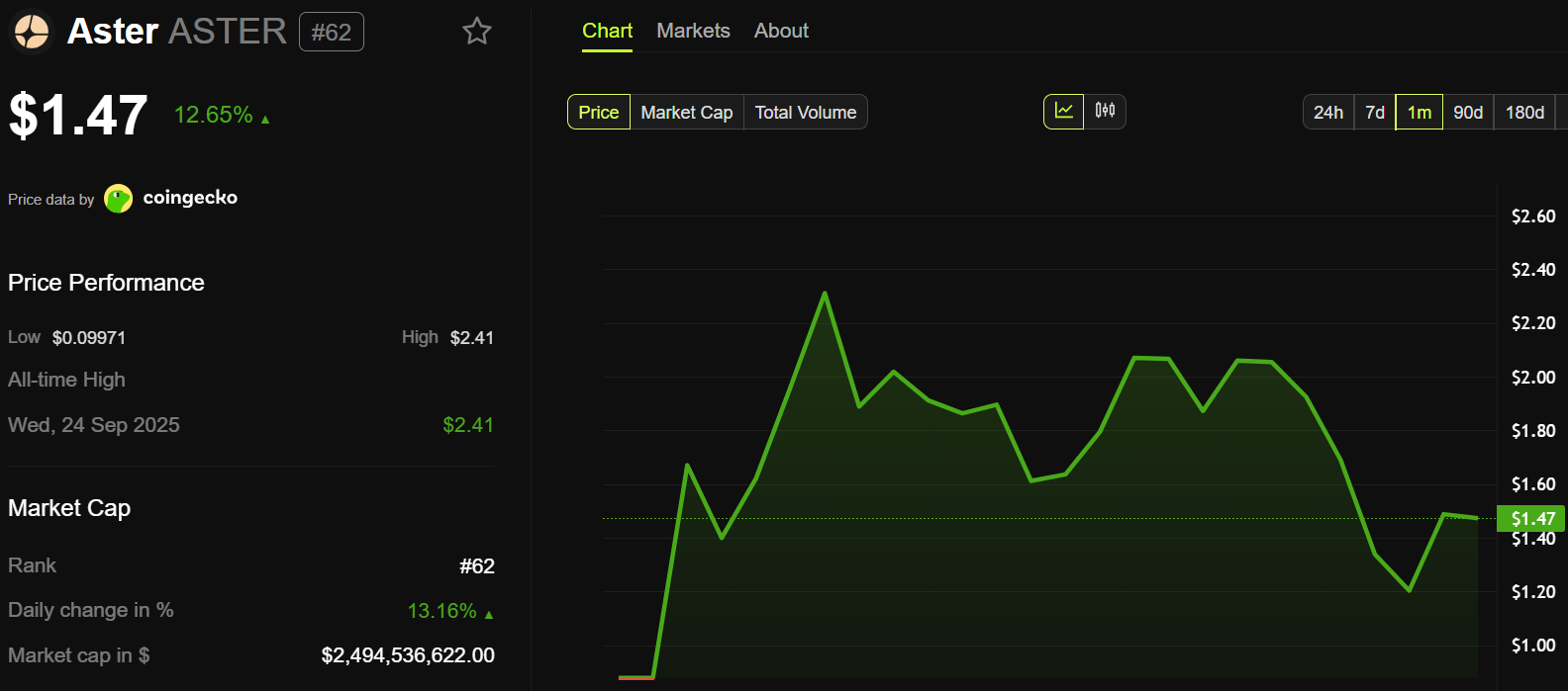 Kết quả là, giá của ASTER đã tăng gần 13% lên 1.47 USD, phản ánh sự quan tâm mạnh mẽ từ thị trường.