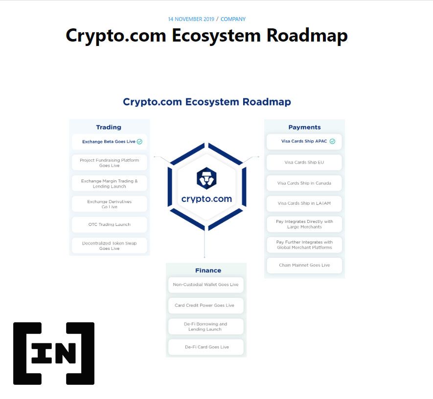 Trong kế hoạch phát triển của Crypto.com, công ty đã phát hành phiên bản tiếng Bồ Đào Nha và Tây Ban Nha cho app của sàn giao dịch. Đồng thời, dịch vụ cho phép 600 triệu người bản ngữ tiếp cận thẻ Visa.
