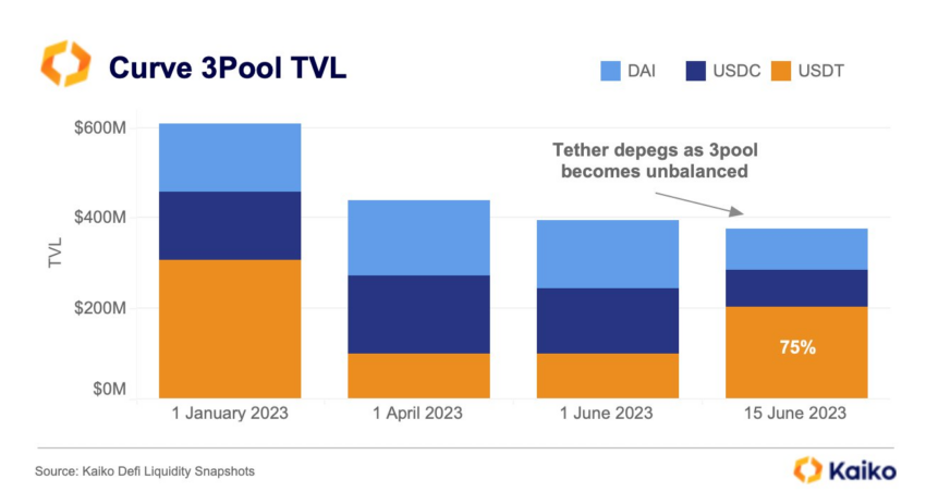 Giá của USDT giảm xuống khoảng 0.997 USD khi tài sản trong 3pool của Curve tăng lên 70% so với mức 33% thông thường.