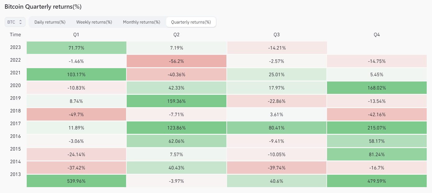 Quý 4 của năm thương mang đến lợi nhuận lớn nhất cho Bitcoin