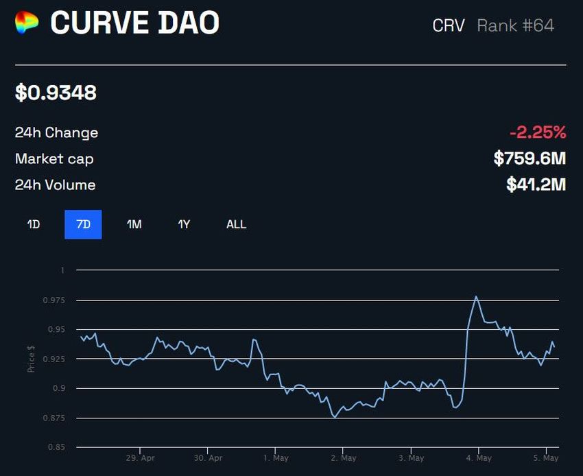 Mã thông báo gốc của Curve Finance, CRV, đã chứng kiến sự tăng giá sau khi ra mắt stablecoin. CRV đã tăng 10% vào ngày 04/5 lên gần 1 USD nhưng kể từ đó đã giảm trở lại.