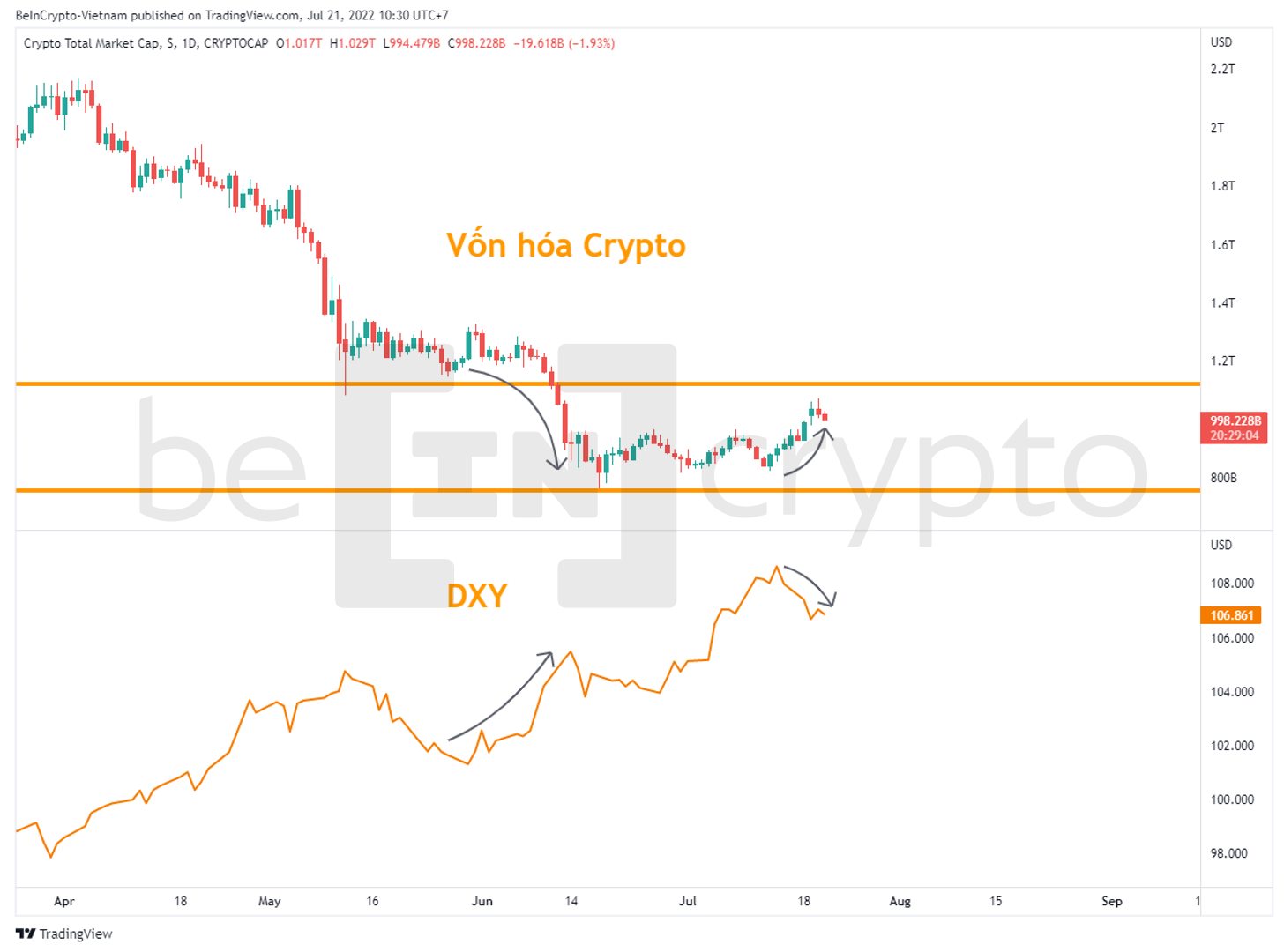 Từ đó, dựa trên mối tương quan nghịch suốt một năm qua, giá Bitcoin và Crypto nói chung có thể sẽ phục hồi ngắn hạn trong tháng 8, hoặc ít nhất là chưa có đáy mới sâu hơn.