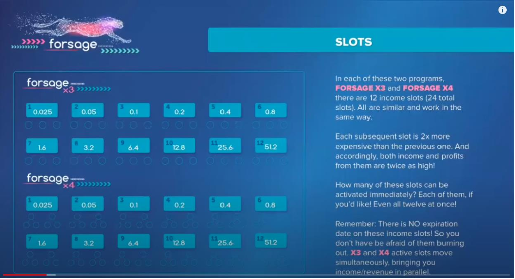 Forsage được trang web DappStats xếp hạng như một ứng dụng ‘rủi ro cao’, khi người sử dụng tạo lợi nhuận bằng cách thu hút nhiều người sử dụng hơn để đầu tư vào các ‘vị trí’ nhiều cấp độ. Mỗi vị trí đắt gấp đôi so với trước đó, và trả lại lợi nhuận gấp đôi cho người giới thiệu ban đầu.