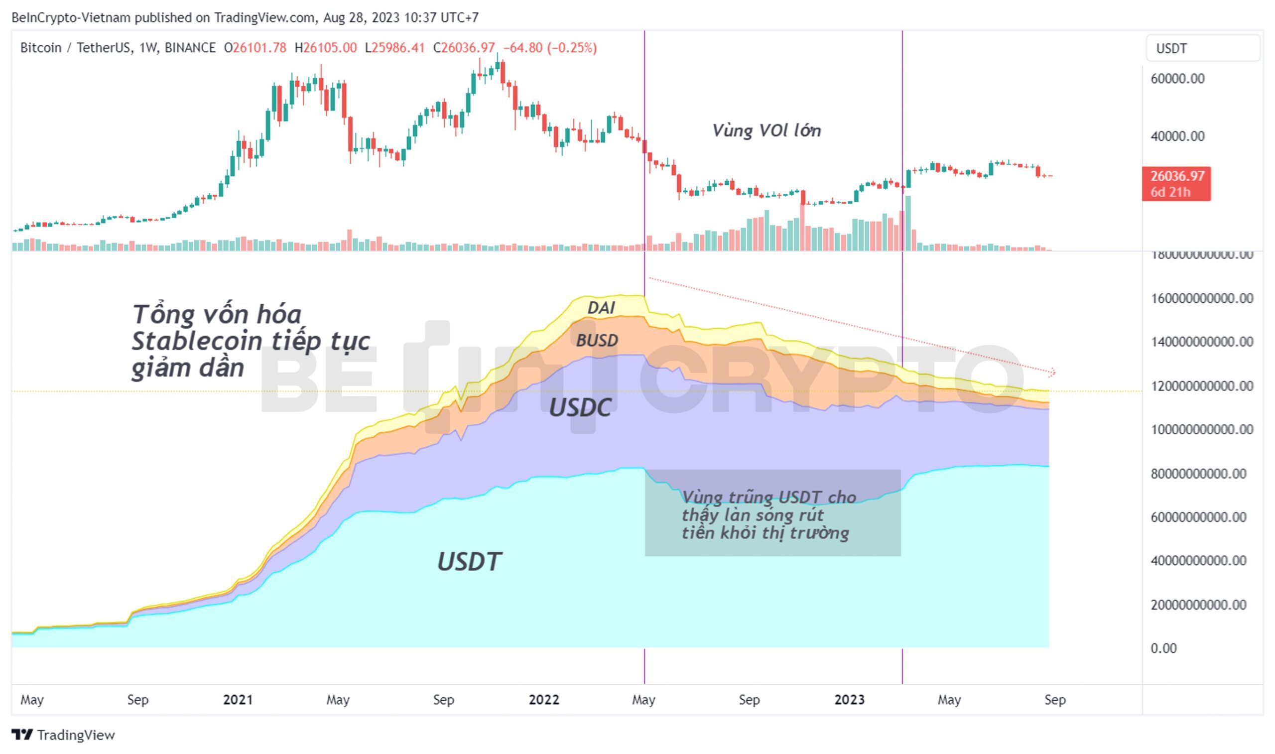 Vốn hóa stablecoin bước vào downtrend dài nhất lịch sử