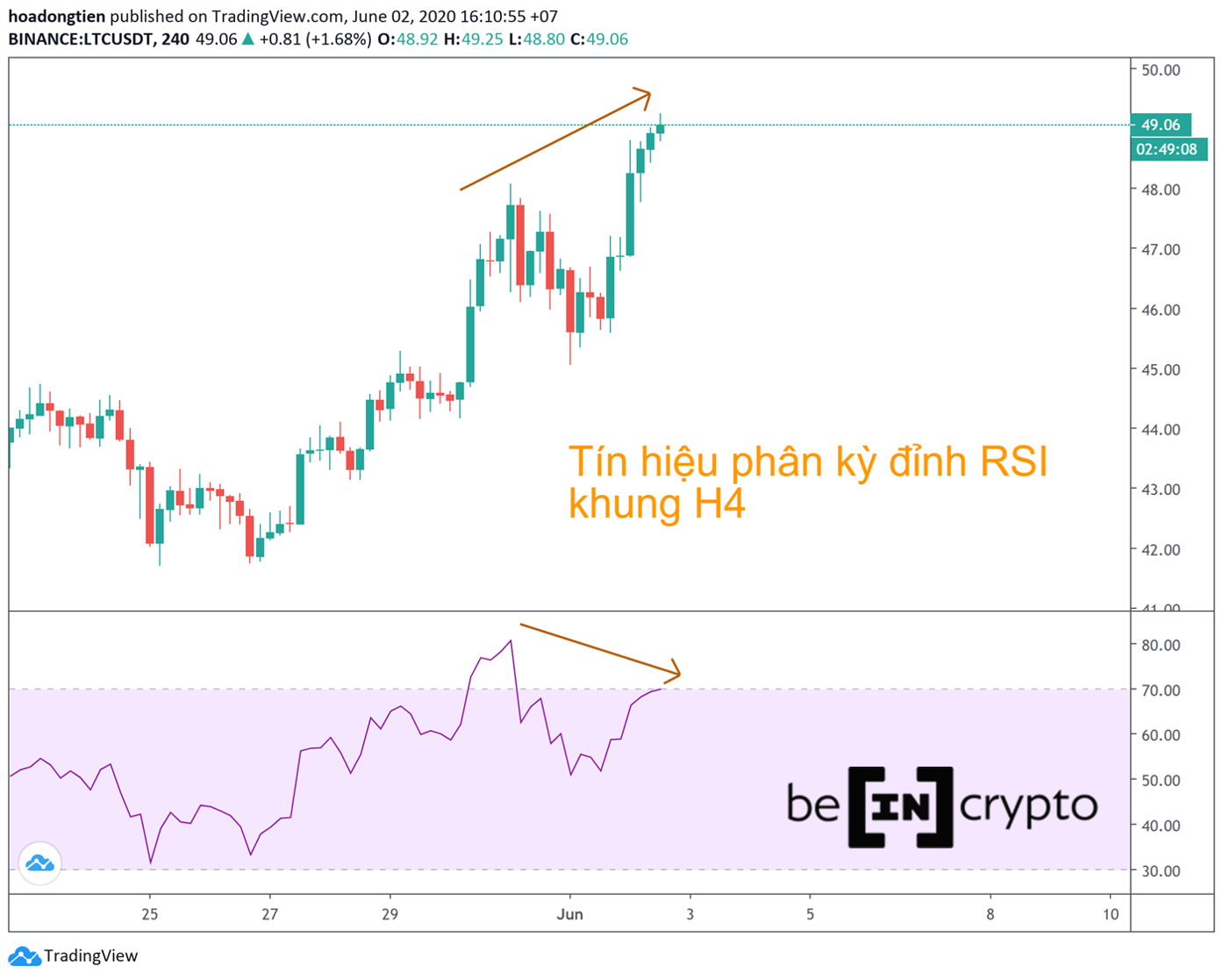 Tín hiệu phân kỳ là khi giá lập đỉnh cao hơn nhưng chỉ báo tương ứng của nó thì lập đỉnh thấp hơn (tương tự ngược lại với đáy). Tín hiệu phân kỳ không có nghĩa là đảo chiều xu hướng, nhưng nó gợi ý cho trader biết đang đối diện cản mạnh và tránh động thái FOMO không cần thiết.