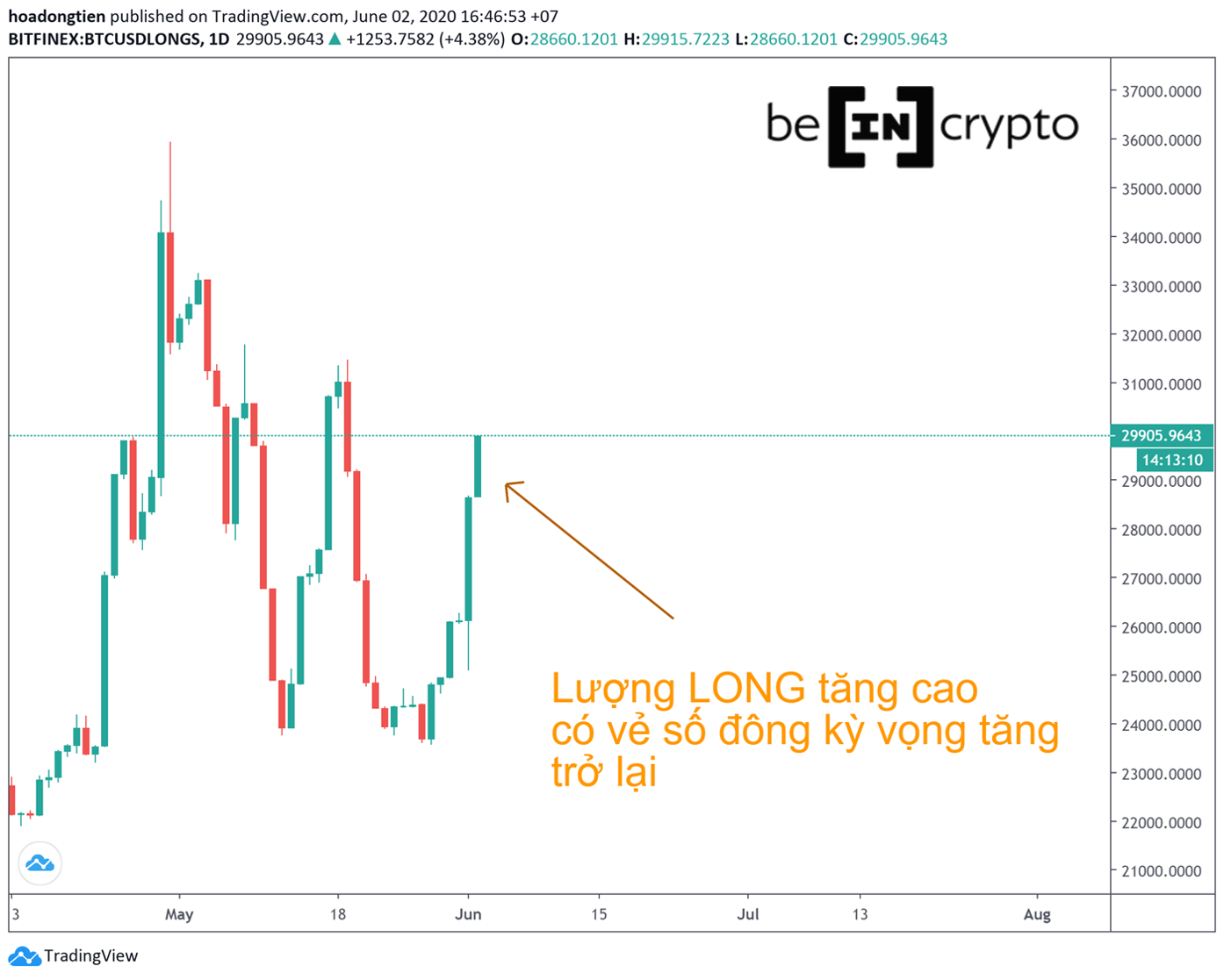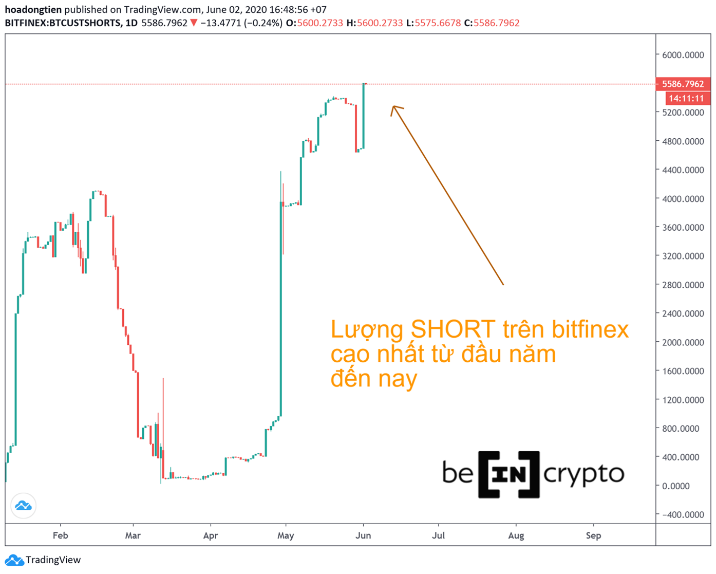 Lượng SHORT cũng tăng cao và cao nhất từ đầu năm đến nay trên sàn Bitfinex.