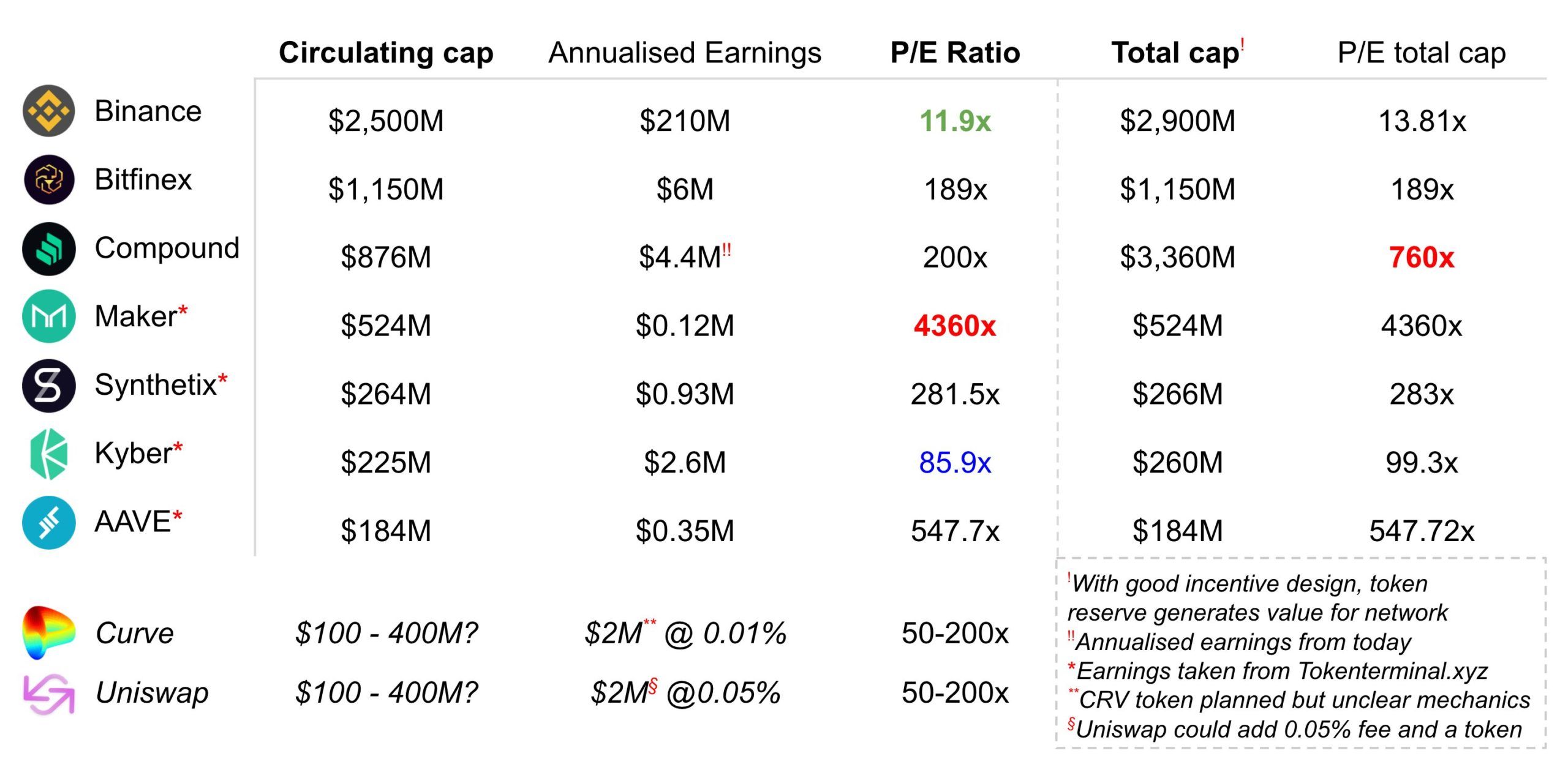 Watkins cũng gợi ý là việc định giá tương đối này thường được ưa thích hơn, do định giá cơ bản không đáng tin cậy đối với các token DeFi tại giai đoạn này. Do chúng giống như những startup trong giai đoạn đầu, mà có có quá nhiều điều không chắc chắn đối với dòng tiền tương lai của chúng.