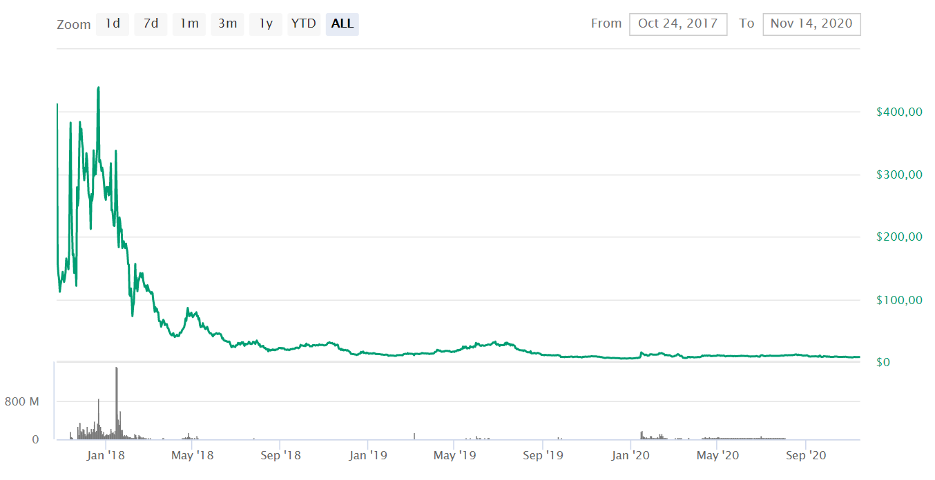 Thế nhưng kể từ đầu năm 2018, giá của BTG đã sụt giảm nhanh chóng và không bao giờ vực dậy cho đến tận bây giờ. Hiện tại, đồng coin anh em này của Bitcoin đang được giao dịch tại 7,68 USD, giảm hơn 98% giá trị kể từ mức cao mọi thời gian.