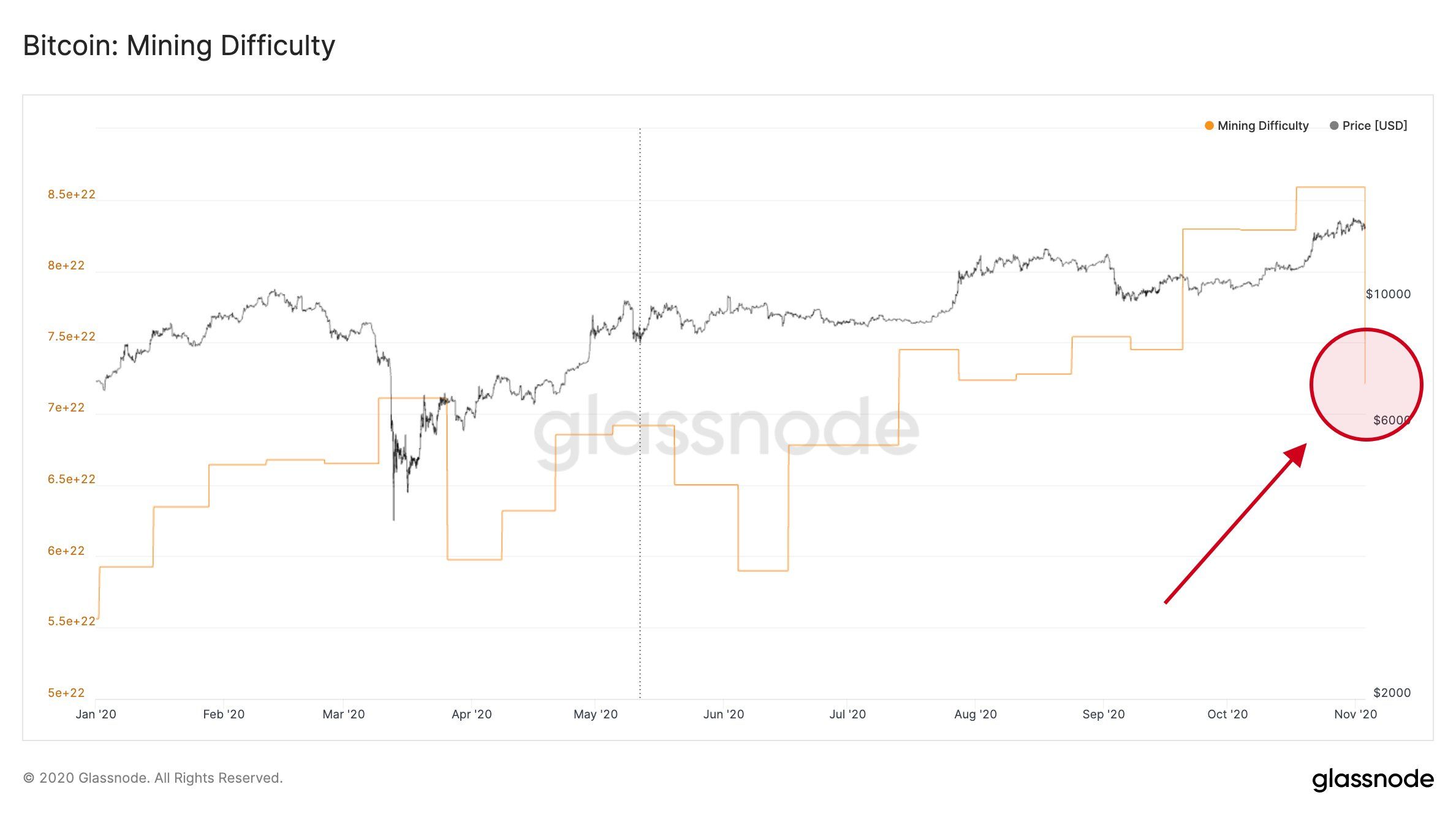 Độ khó của đồng tiền điện tử lớn nhất thị trường vừa mới điều chỉnh giảm 16% trong ngày hôm qua, theo Glassnode.