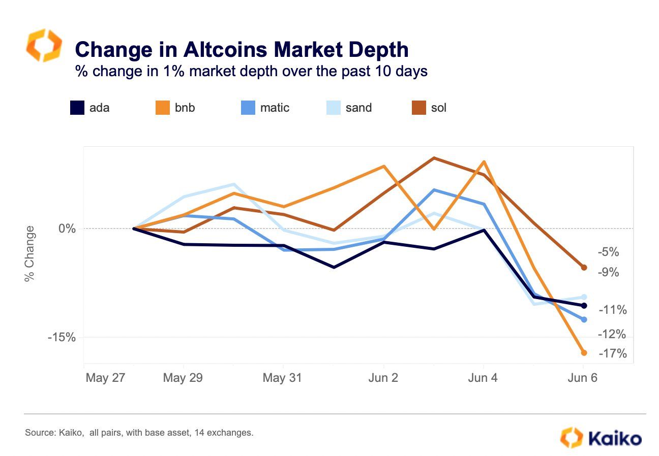 Độ sâu thị trường của nhiều Altcoin giảm mạnh trong tháng 6
