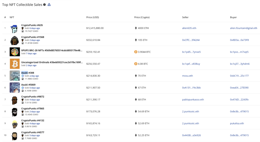 Sự bất ổn của thị trường tiền điện tử trái ngược với lĩnh vực NFT đang phát triển mạnh. Azuki nổi lên như là bộ sưu tập duy nhất đạt doanh thu hơn 1 triệu USD. Sự gia tăng này đã đẩy tổng doanh số bán hàng của Azuki lên khoảng 1.12 tỷ USD, sau đó, định vị nó là bộ sưu tập NFT lớn thứ tám về doanh số.
