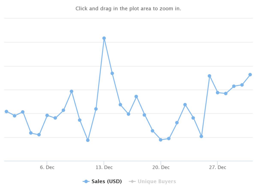 Tổng số người mua duy nhất trong khoảng thời gian thị trường phục hồi vào tháng 11 năm 2021 là 901,078, nhưng đã giảm nhẹ xuống còn 886,550 vào tháng 12 năm 2021.