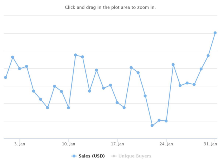 Số lượng người mua duy nhất tăng đột biến 148% từ tháng 8 dẫn đến số lượng người mua NFT mới trên Ethereum đạt mức cao nhất mọi thời đại vào tháng 1 năm 2022. Trong tháng đầu tiên của năm, số lượng người mua duy nhất là 347,186 người, tương ứng với 1.27 triệu giao dịch. Tháng này cũng được chứng minh là mức cao nhất mọi thời đại của Ethereum về doanh số bán hàng tháng với khoảng 3.98 tỷ USD.