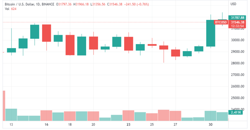 Mặt khác, Bitcoin đã trải qua chín ngày đầu tiên của tháng 5 với mức giao dịch trong phạm vi từ 30,000 đến 40,000 USD. Trong 22 ngày qua, BTC đã giao dịch nhiều hơn trong khoảng giá từ 25,000 USD đến 32,000 USD. Vào tháng 4 năm 2022, Bitcoin đã dành phần lớn thời gian trong ngày để giao dịch trong khoảng từ 37,000 đến 44,000 USD. Nhìn chung, BTC đã mở cửa ở mức 37,713 USD vào ngày 1 tháng 5 và đóng cửa ở mức 31,792 USD vào ngày 31 tháng 5. Như vậy, đã có sự sụt giảm 15% trong giá mở và đóng cửa của BTC vào tháng 5.