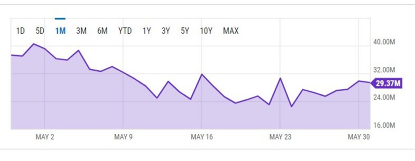 Mức cao nhất trong một ngày cho tháng 5 năm 2022 thấp hơn 11% so với mức cao nhất trong ngày tốt nhất trong tháng 4. Mức cao nhất trong một ngày trong tháng 4 là 46.01 triệu USD, theo dữ liệu từ YCharts. Mức cao nhất trong một ngày của tháng 5 là 40.53 triệu USD và thấp hơn 32% so với mức cao nhất trong ngày là 60.16 triệu USD vào tháng 1 năm 2022.