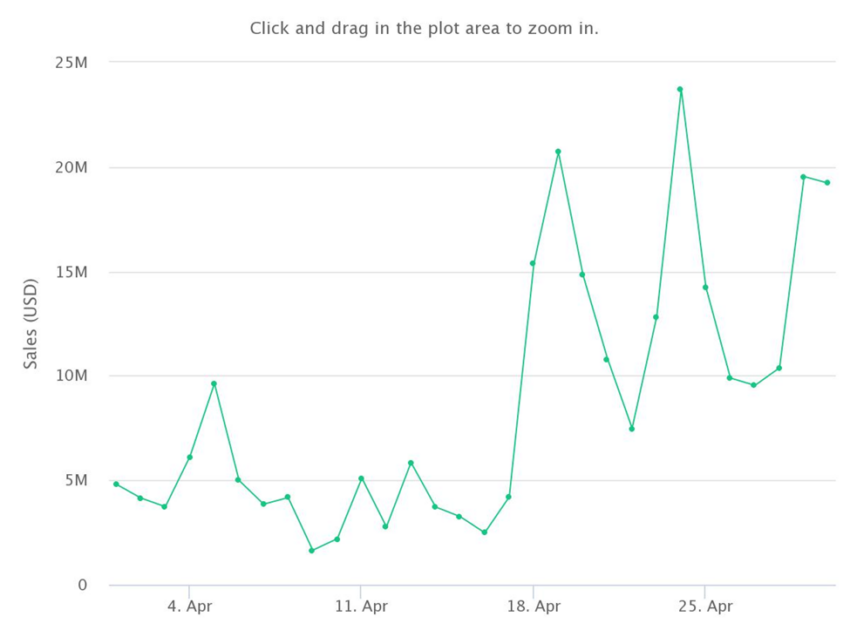 Liên quan đến tháng 4, khi MAYC đạt mức doanh thu hàng tháng cao hàng năm. Số lượng chủ sở hữu duy nhất là khoảng 1,876, tương ứng với 2,812 giao dịch. Vào cuối tháng đó, doanh thu của MAYC đạt 261.16 triệu USD.