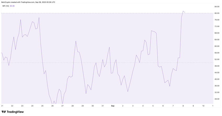Xu hướng mua ổn định này phù hợp với những gì chúng ta thấy trên biểu đồ 4 giờ. Chỉ số Money Flow Index (MFI), đo lường hướng dòng tiền, đã có xu hướng tăng từ đầu tháng 09. Trên biểu đồ hàng ngày, chúng ta thấy những cây nến dài che giấu những đợt giảm nhỏ. Tuy nhiên, biểu đồ 4 giờ cung cấp cái nhìn rõ ràng hơn về những đợt giảm đó, và MFI ở đó cho thấy mỗi đợt giảm đã được mua nhanh chóng.
