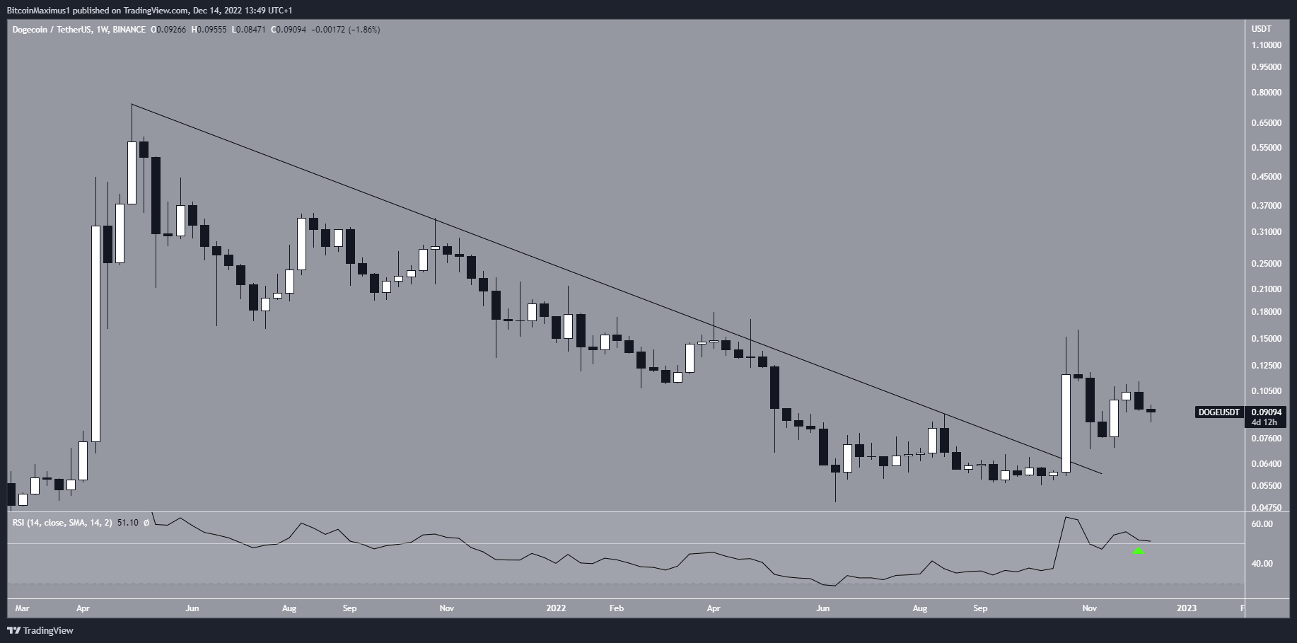 Các tín hiệu từ biểu đồ tuần hỗ trợ các chuyển động đi lên rõ ràng hơn. 2 lý do cho điều này là giá đã bứt phá khỏi đường kháng cự giảm dần được thiết lập kể từ mức ATH và chỉ báo RSI tuần trên 50. Do đó, khả năng giá DOGE phá vỡ khỏi đường kháng cự giảm dần trong ngắn hạn có nhiều khả năng xảy ra hơn một chút so với kịch bản phá vỡ từ vùng hỗ trợ 0.089 USD.