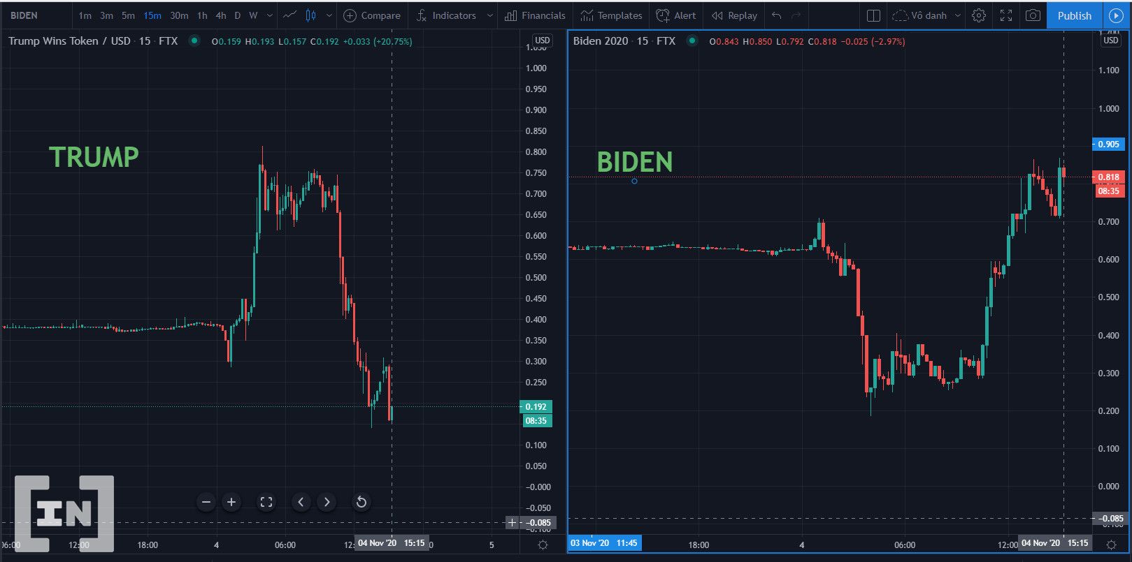 Nhiều thông tin xoay quanh cuộc bầu cử, hai đồng tiền này biến động liên tục. Mức cược cho hai token này là 0.5 USD. Các nhà đầu tư tham gia hợp đồng phải chuẩn tinh thần “được ăn cả, ngã về không”.