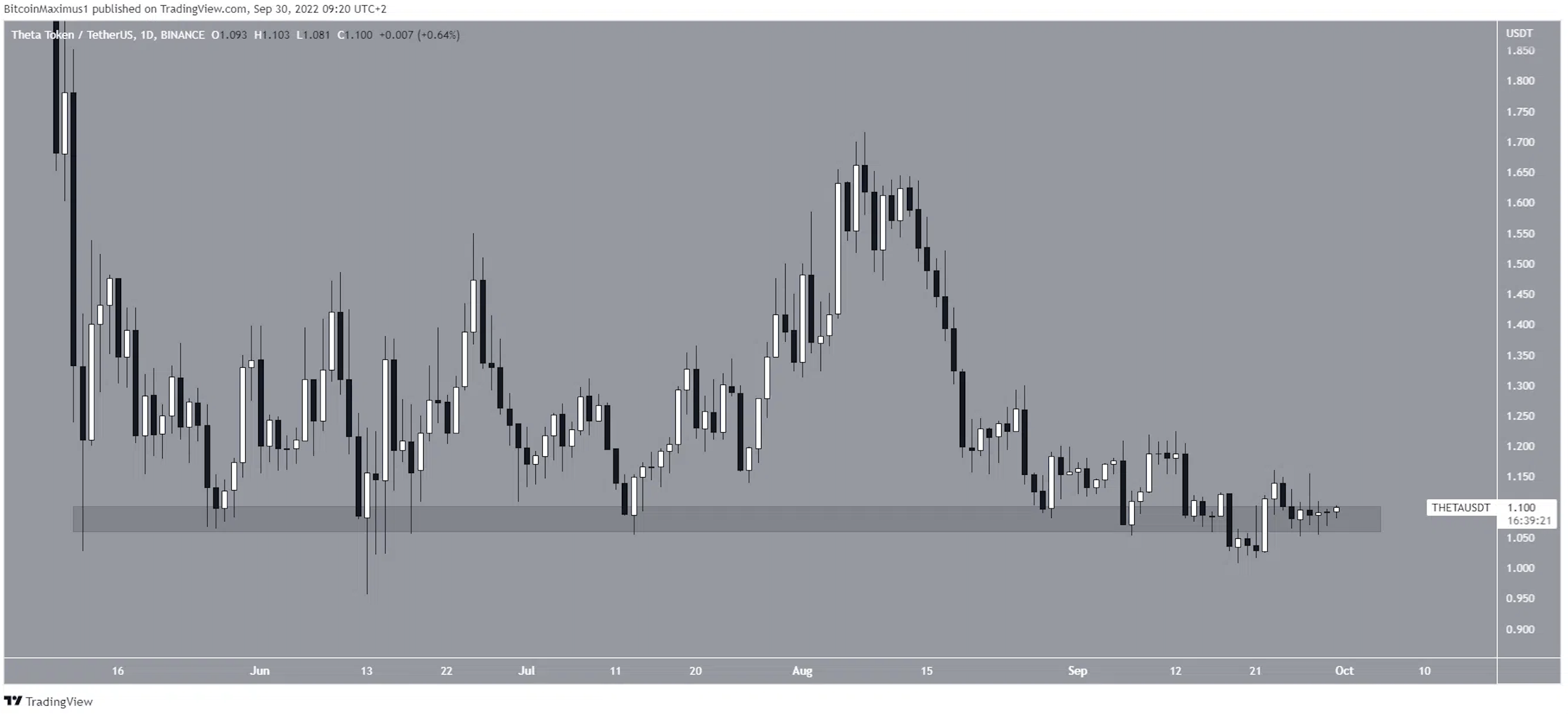 Sponsored SponsoredTHETA đã được giao dịch ngay trên vùng hỗ trợ ngang 1.1 USD kể từ tháng 5. Trong khi nó dường như bị phá vỡ vào ngày 20/9, nó đã giành lại khu vực kể từ đó. Liệu THETA có giảm xuống dưới khu vực này một lần nữa hay xác nhận nó là hỗ trợ thay vào đó sẽ có khả năng xác định hướng của xu hướng?