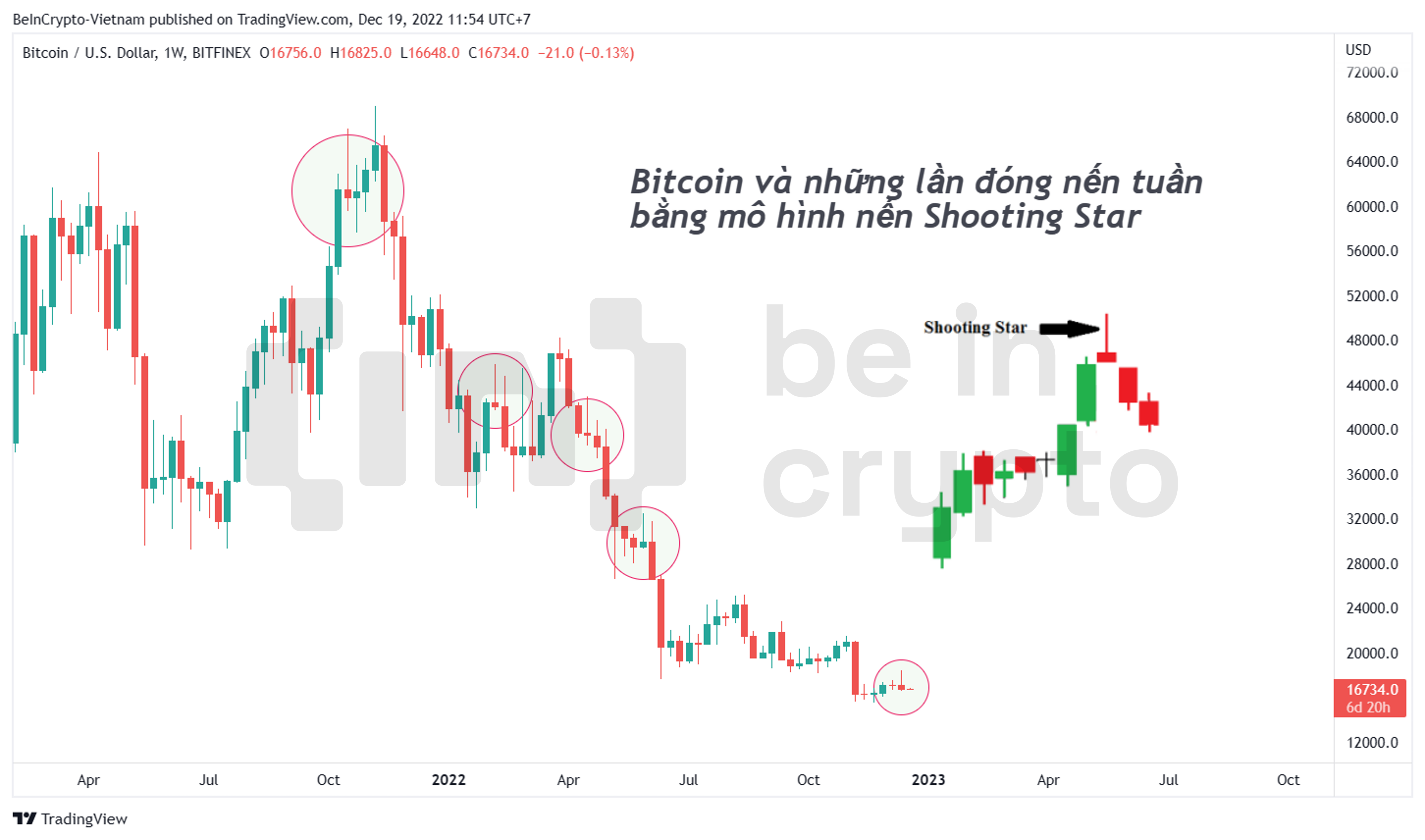 Giá Bitcoin vừa đóng nến tuần bằng mô hình nến Shooting Star