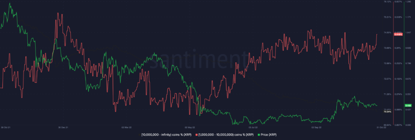 Nói chung, cá voi XRP tích lũy thêm tài sản trong suốt thời kỳ biến động ở mức thấp. Thời điểm mà giá XRP đang ở mức thấp và họ kỳ vọng giá sẽ tăng lên trong tương lai. Đáng chú ý, nhóm cá voi Ripple sở hữu từ 1 triệu đến 10 triệu XRP coin đã tăng lượng nắm giữ của họ chỉ trong vài ngày. Trên thực tế, nhóm này đã tăng đáng kể lượng nắm giữ kể từ tháng Năm.