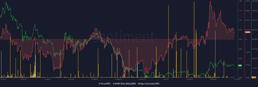 Trong khi Age consumed dẫn đến một số thay đổi về giá trong ngắn hạn. Nhưng điều ngược lại lại không diễn ra. MVRV 90 ngày của XRP đã có xu hướng giảm. Cho thấy đồng coin này đã bị định giá thấp ngay cả trong dài hạn.