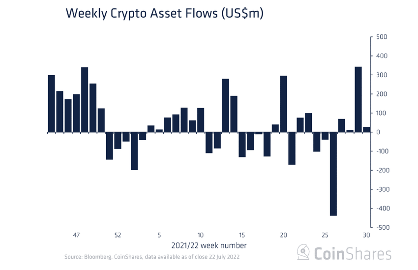 Theo báo cáo của CoinShares, dòng tiền đầu tư vào thị trường tiền điện tử đạt 343 triệu USD trong tuần này. Đây là dòng tiền vào lớn nhất kể từ tháng 11 năm 2021. Tổng dòng tiền chảy vào thị trường tiền điện tử tính từ đầu tháng đã đạt 394 triệu đô la.