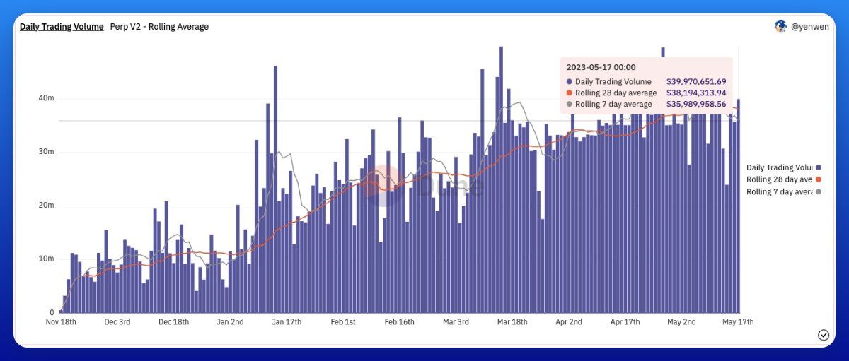 Tiếp tục chủ đề về Decentralized perps, một đại diện khác mà bạn nên quan tâm là Perpetual Protocol. Perpetual Protocol có UI/UX khá trực quan, phù hợp cho những người mới tham gia. Giao thức Perpetual luôn có khoảng 40 triệu USD khối lượng hàng ngày và 10 tỷ USD tích lũy kể từ khi thành lập.