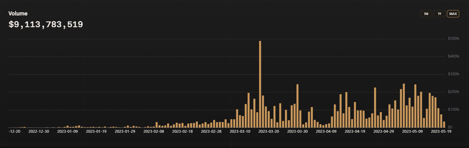 Tiếp tục là một công cụ chuyên về quyền chọn và phái sinh khác được cung cấp bởi Synthetix. Nó hứa hẹn giúp người dùng có thể tiếp cận đến thanh khoản sâu và mức phí thấp. Tính đến nay, Kwenta cũng đã tích lũy cho mình khối lượng giao dịch lên đến hơn 9 tỷ USD. Mức giá hiện tại của KWENTA là 342.70 USD. Hiện mức giá này đã thấp hơn 56% so với mức ATH hồi tháng 3/2023.