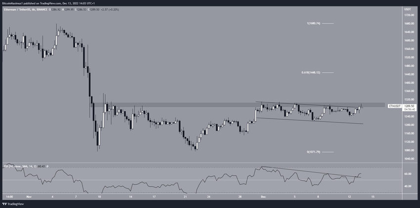 Tuy nhiên, giá Ethereum đã bứt phá khỏi một kênh song song giảm dần ngắn hạn vào ngày 13/12. Điều này cũng trùng hợp với việc chỉ số RSI bứt phá khỏi đường kháng cự giảm dần của chính nó. Ngược lại, nếu ETH điều chỉnh trở lại mức kháng cự 1,290 USD và tiếp tục giảm, giá có thể dẫn đến việc giảm xuống còn 1,200 USD.