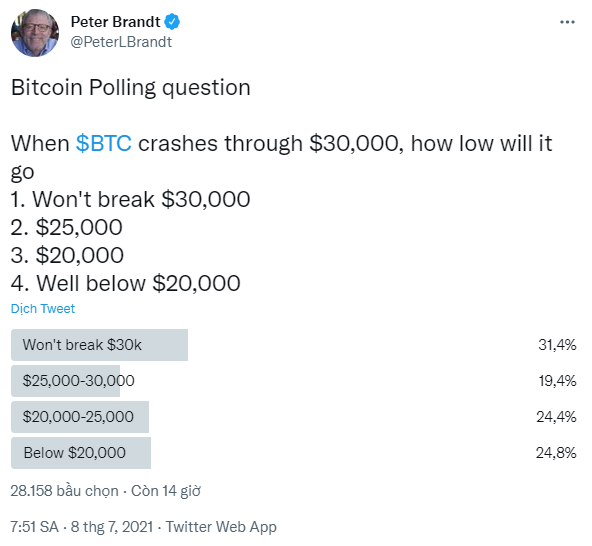 - Hơn 31% kỳ vọng Bitcoin sẽ không phá mức hỗ trợ 30,000.